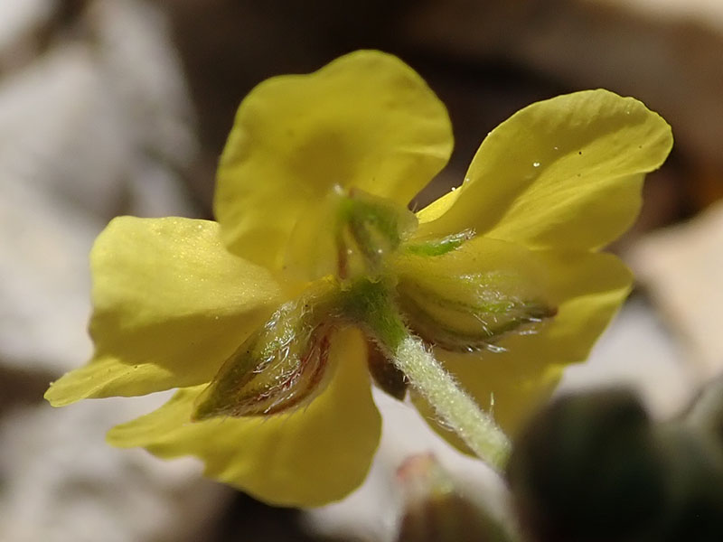 Calice à sépales inégaux recouvert de poils blancs