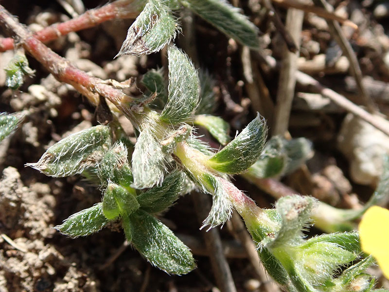 Feuilles entières, oblongues, sessiles, opposées, couvertes de poils blancs