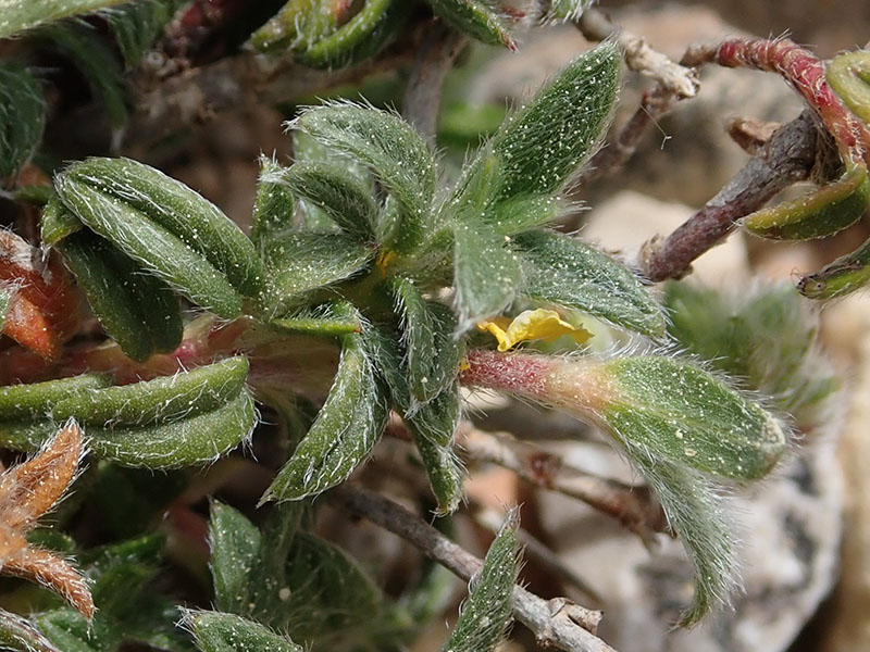 L'hélianthème d'Italie est une petite plante que l'on trouve dans les pelouses sèches, les garrigues et entre les rochers dans les milieux calcaires. Les tiges mesurent de 10 à 20 cm de longueur et sont souvent couchées sur le sol, seuls les rameaux fleuris sont verticaux. Les feuilles sont petites et légèrement enroulées sur les bords. Les fleurs ont un calice très velu à sépales striés et inégaux (trois grands et les deux externes plus petits), égalant presque les pétales. C'est des plantes vivaces, qui ne produit pas de rejets et dont la racine principale, persistante, devient très ligneuse.