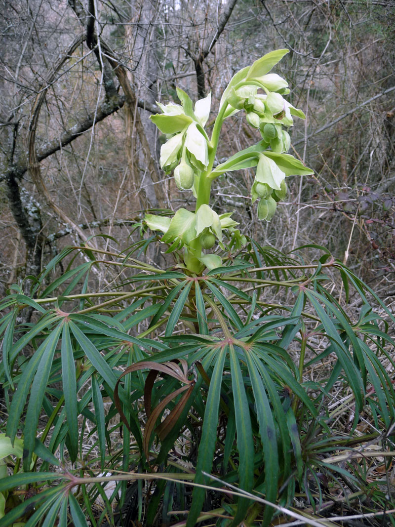 Cette plante à racine épaisse produit une tige robuste et courte. Elle porte de grandes feuilles coriaces, qui peuvent durer toute l'année. Les fleurs vertes en cloche (parfois bordées de rouge) sont munies de nombreuses étamines souvent plus longues que les pétales. On la rencontre dans les bois, les endroits rocheux en sol plutôt sec et calcaire.C'est une plante toxique par ingestion comme beaucoup de renonculacées.