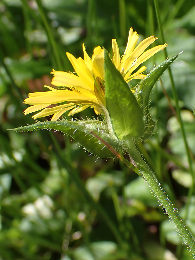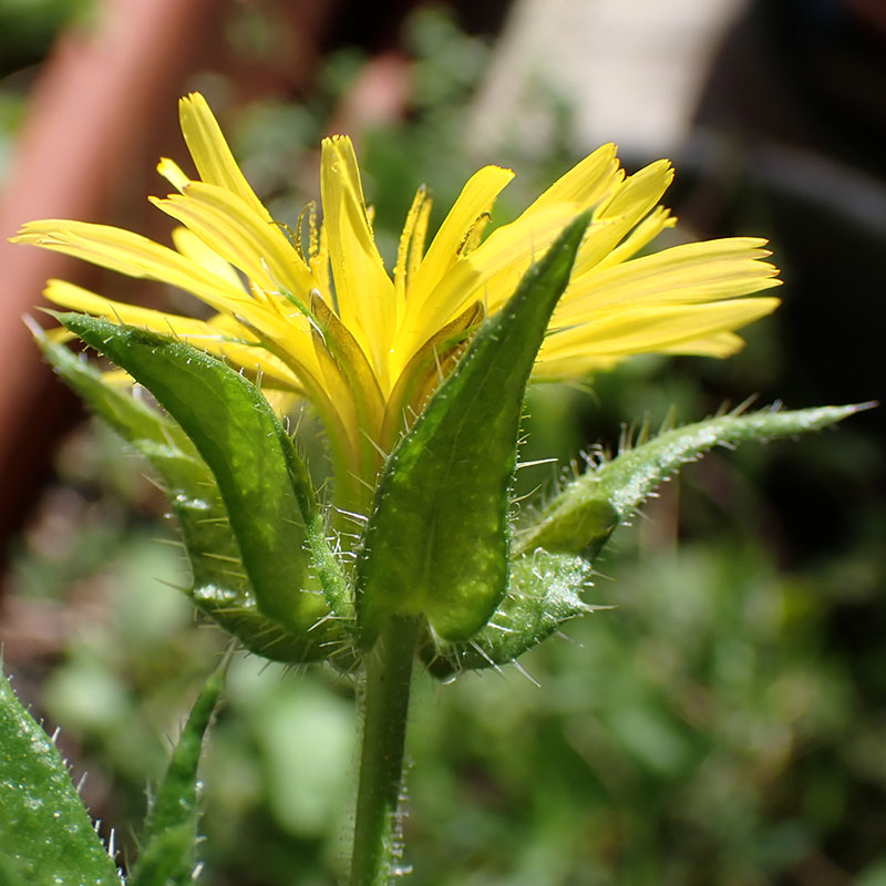 Capitule vu de profil (les bractées externe permettent de différencier facilement cette plante de la picride fausse épervière) ...