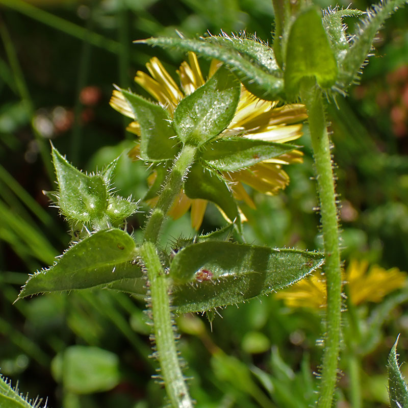 Plante hispide avec 3 à 5 bractées externes entourant les capitules