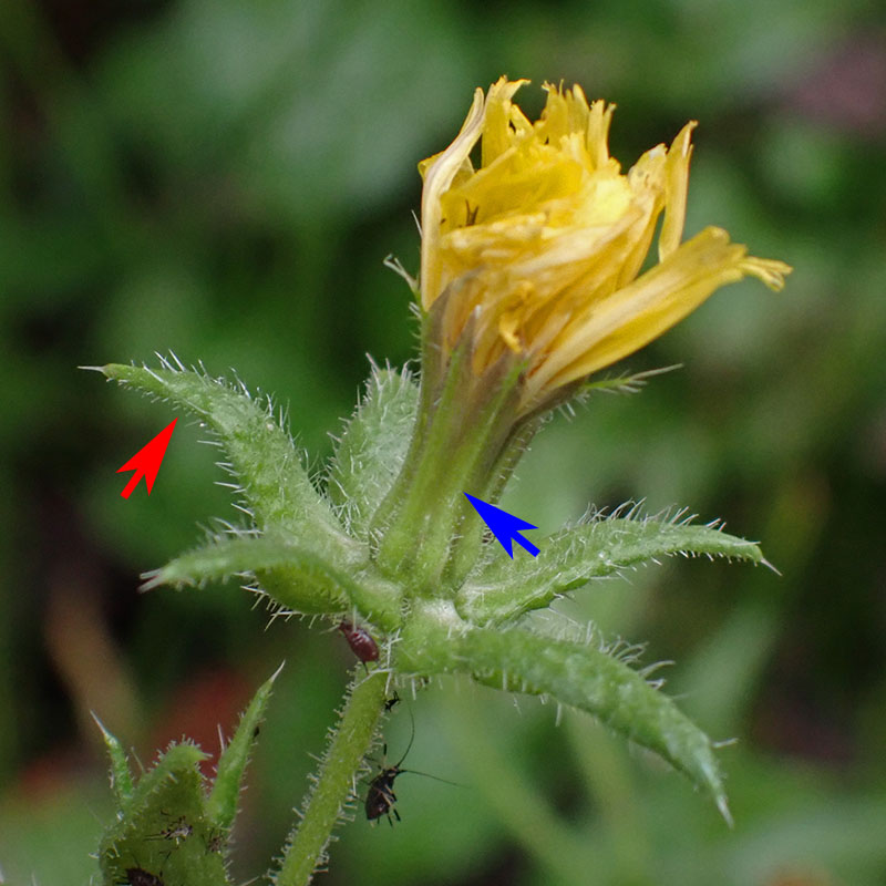 5 bractées externes pour ce capitule fané (flèche rouge) et des bractées internes contiguës terminée en pointe
