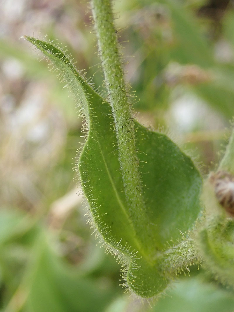 Feuilles toutes couvertes sur les bords de poils glanduleux, les inférieures oblongues - lancéolées ou oblongues - obovales, sinuées - dentées ou incisées - dentées, rétrécies en pétiole ailé, les caulinaires embrassantes, dentées ou entières