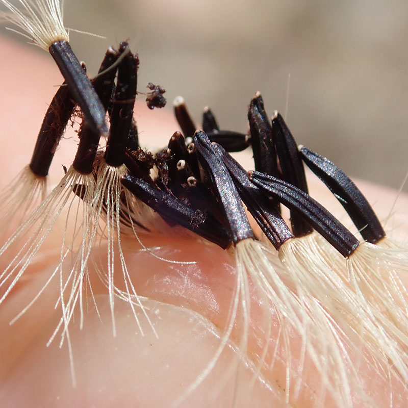 Fruits akènes noirs striés longitudinalement à aigrettes jaune roux