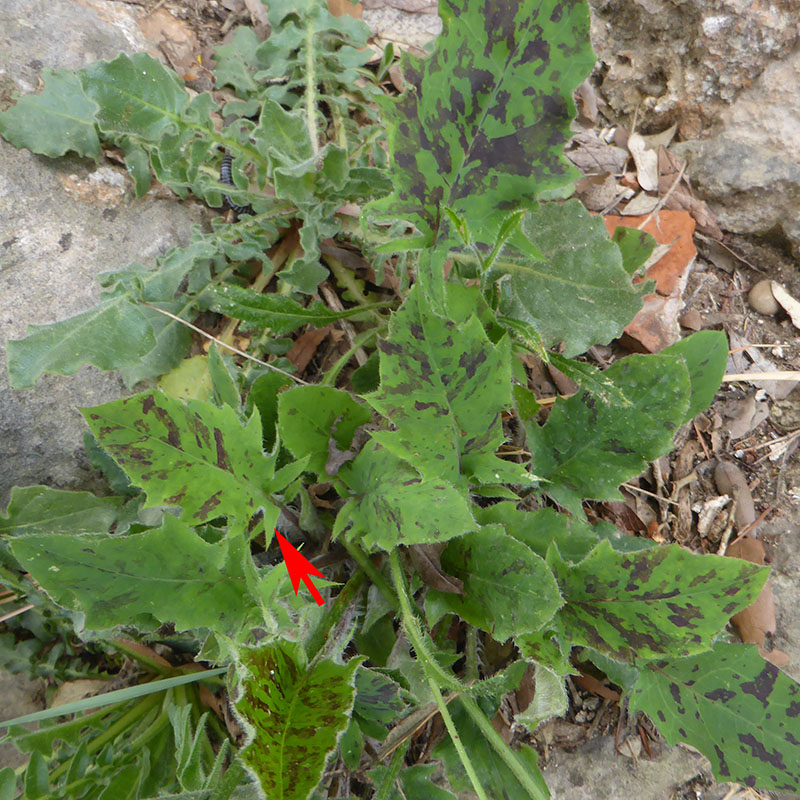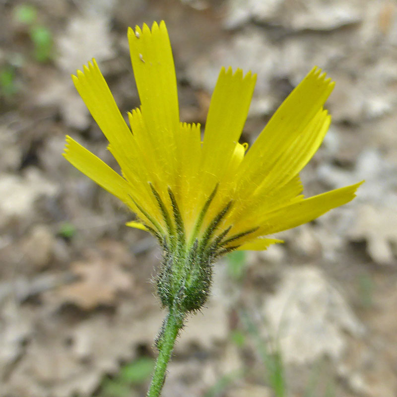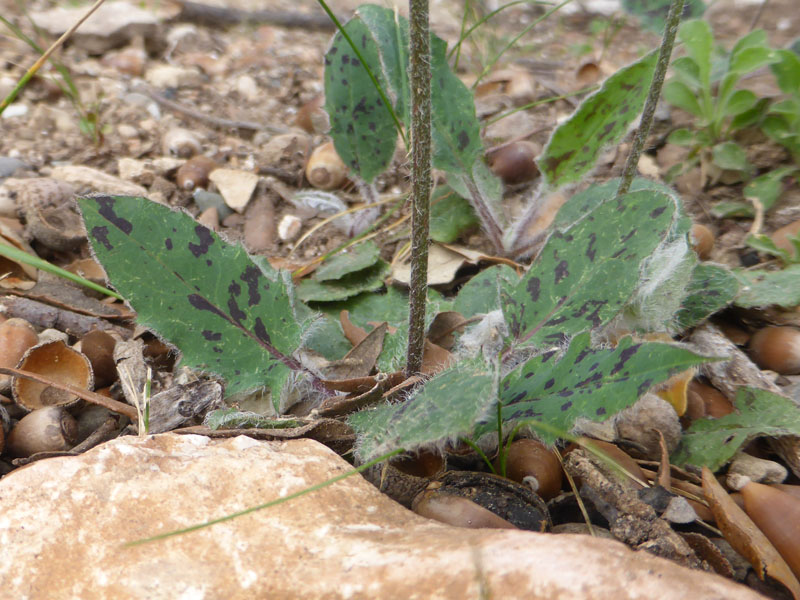 L'épervière bleuâtre est une espèce des bois clairs qui fleurit dès le début du printemps, elle est très commune dans les bois de la région PACA généralement à altitude modérée. On la reconnait à port dressé avec une seule tige partant d'une rosette de feuilles et sur laquelle il n'y a pas de feuilles caulinaire (ou juste une, peu développée). Les feuilles de la rosette sont généralement maculées de brun pourpre, leur limbe est de forme générale ovale, mais il peut être, soit entier soit pourvu de dents parfois très marquées. Elles sont pétiolées et poilues sur les bords, sur les deux faces et sur les pétioles pourvus de poils longs raides et soyeux. L'inflorescence est un corymbe peu fourni. Les ligules des fleurs sont de taille assez inégales et terminées par cinq dents bien nettes. L'involucre est couvert de poils hispides et courts et de poils longs et mous. C'est une plante vivace qui se perpétue par des bourgeons souterrains se développant à l'automne et formant une nouvelle rosette de feuilles.