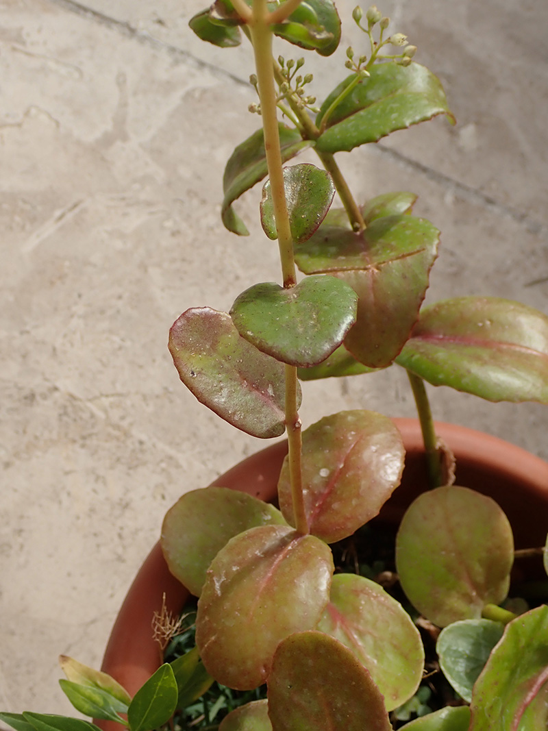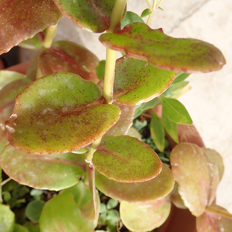 Feuilles sessiles souvent teinté de rougeâtre