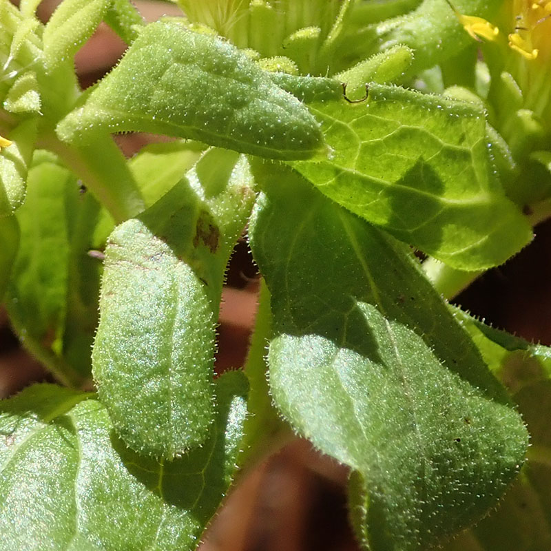 Feuilles ovales- oblongues, obtuses, glanduleuses-visqueuses sur les deux faces, les caulinaires sessiles, embrassantes