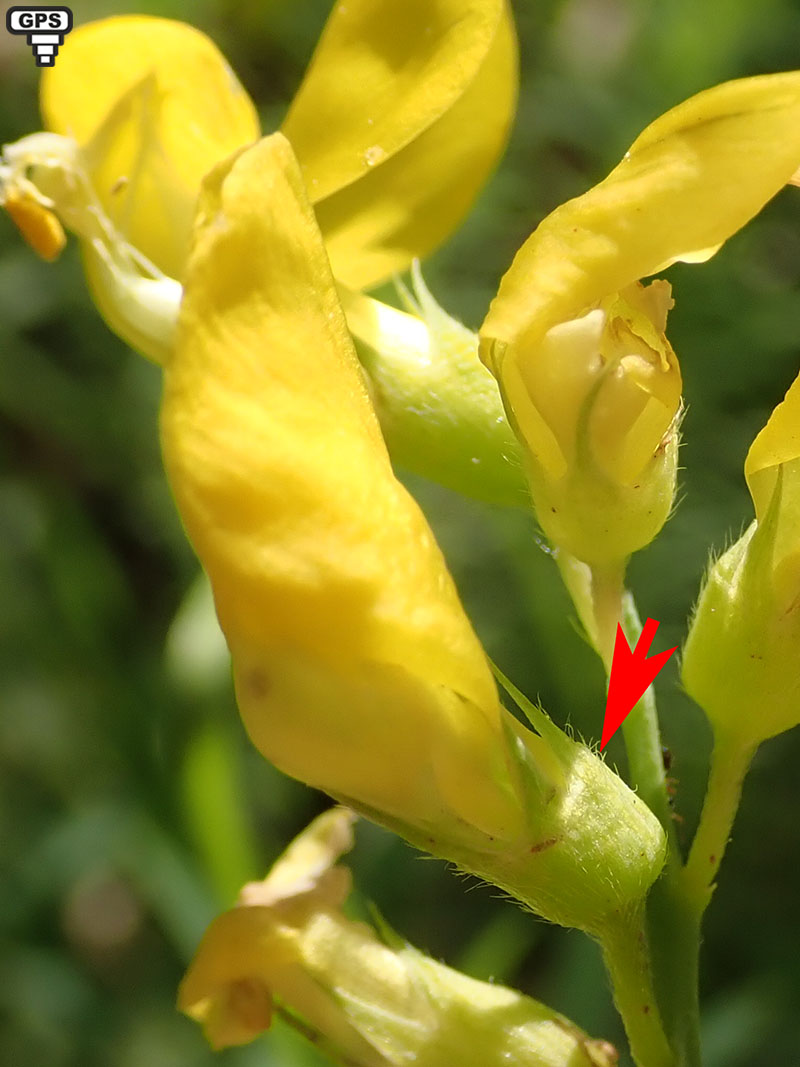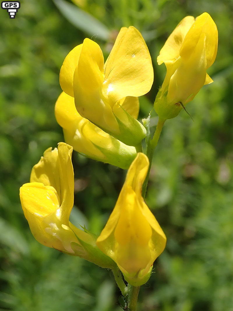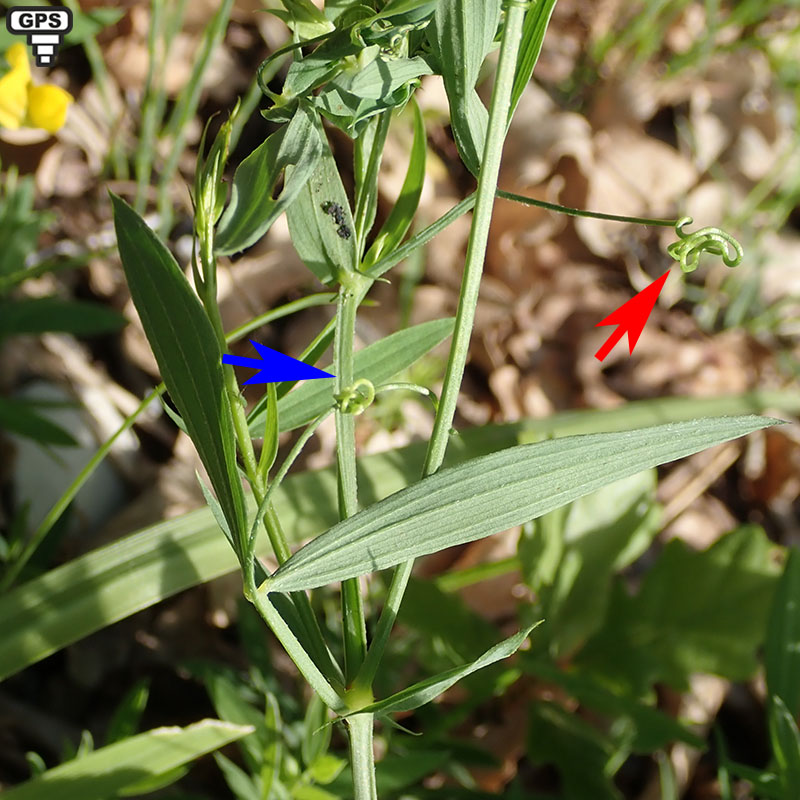 La gesse des prés est très commune dans les prés, les bois, les haies, les buissons et au bord des chemins. C'est une plante vivace à tiges fleuries, anguleuses, ramifiées, grimpantes. A la base des feuilles, on note la présence de stipules en forme de fer de hallebarde. Ses fleurs jaunes ont un étendard strié de violet, elles sont groupées par trois à douze sur un rameau florifère bien plus long que la feuille à l'aisselle de laquelle il se trouve placé.
