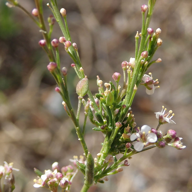 Le passerage à feuilles de graminée est une brassicaceae à 6 étamines et à silicules angustiseptés. C'est une plante très ramifiée à feuilles réduites (les basales sont difficilement visibles) et à fleurs minuscules réunies en racèmes simples. Elle pousse dans les pelouses sèches et les lieux incultes particulièrement dans les régions méditerranéennes.