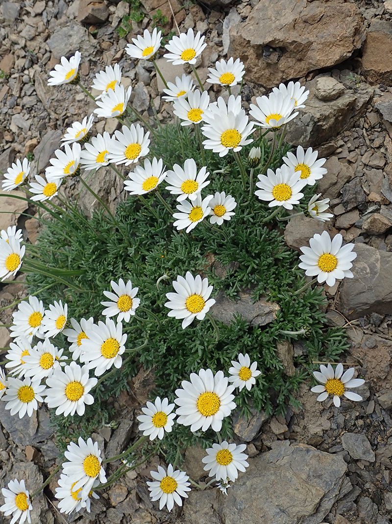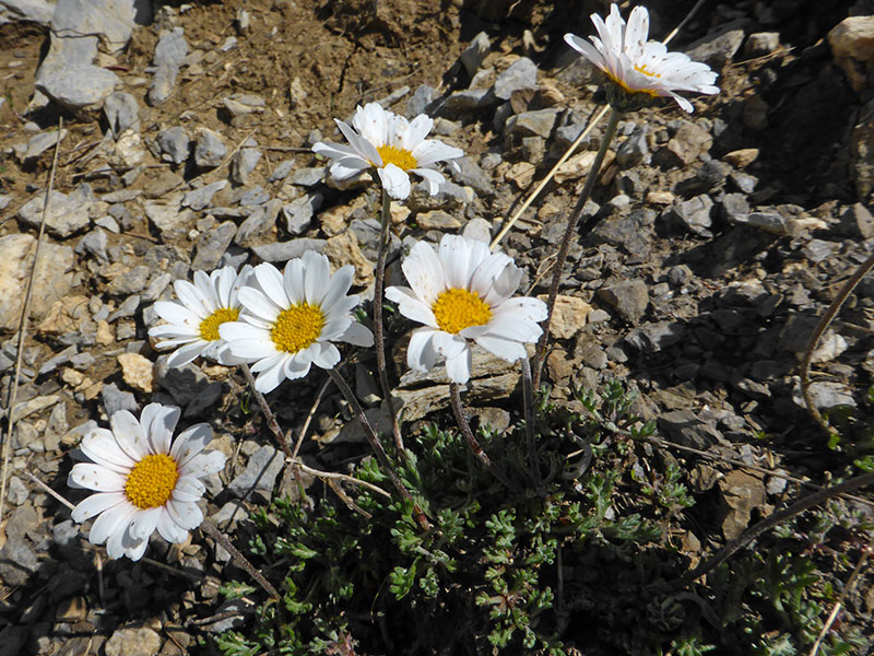 La marguerite à feuilles de coronope pousse également à l'étage alpin des montagnes siliceuses, mais les feuilles diffèrent totalement : elles sont bien plus larges et plates avec 3 lobes cunéiformes.