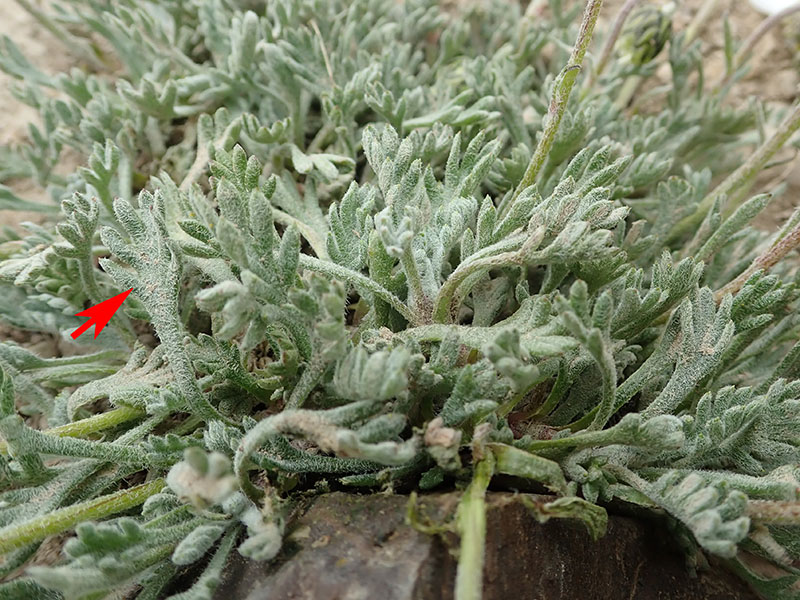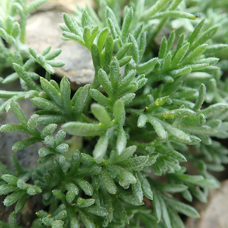 Feuilles glabres ou pubescentes - blanchâtres, pennatipartites ou pennatifides ou digitées, à segments peu nombreux, linéaires et entiers, feuilles moyennes et supérieures très petites, linéaires et entières souvent absentes
