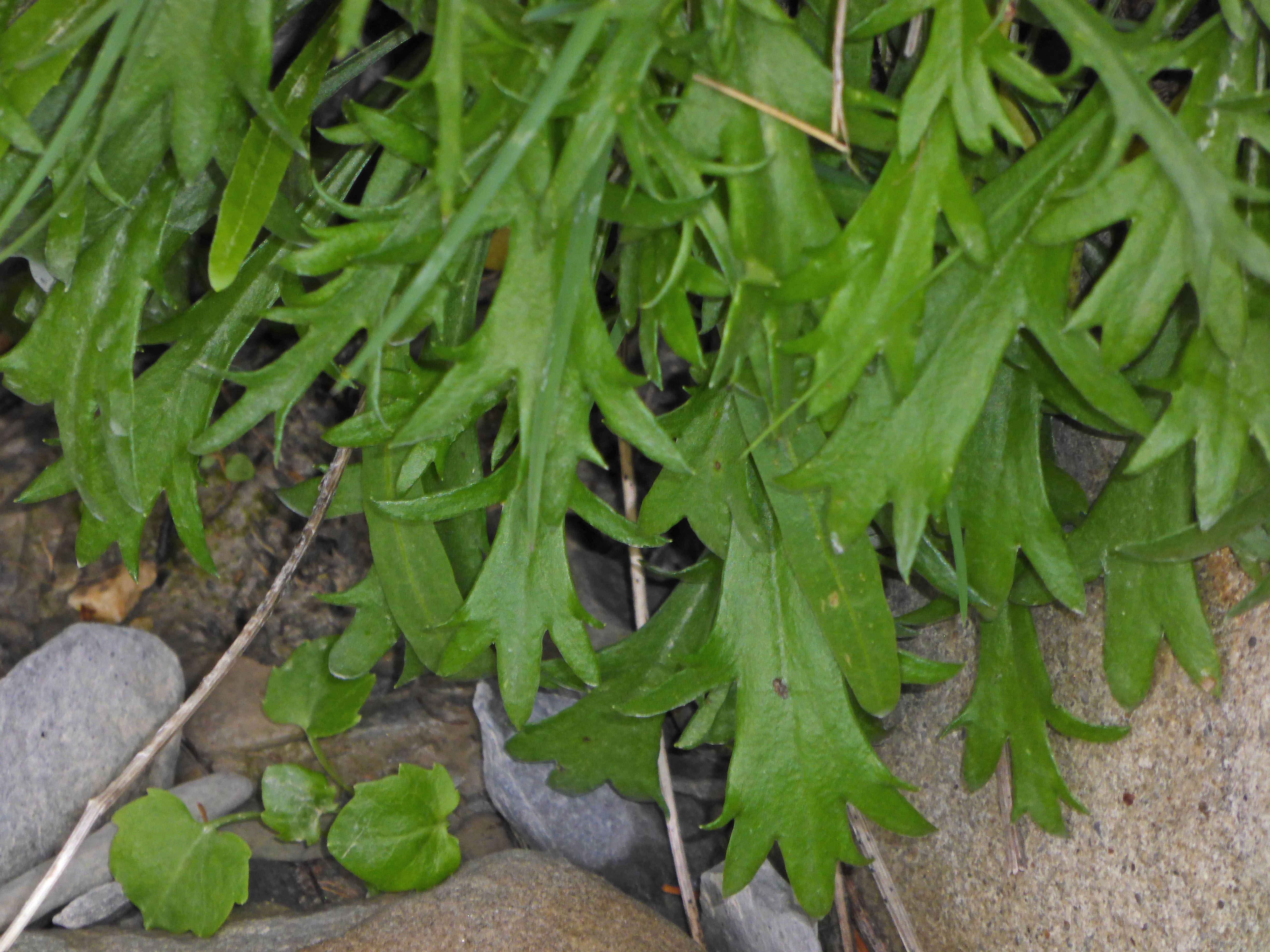 Feuilles inférieures à 3 lobes cunéiformes, rétrécies en long pétiole, les moyennes et les supérieures sessiles, oblongues, pennatipartites ou pennatifides à lobes irréguliers.
