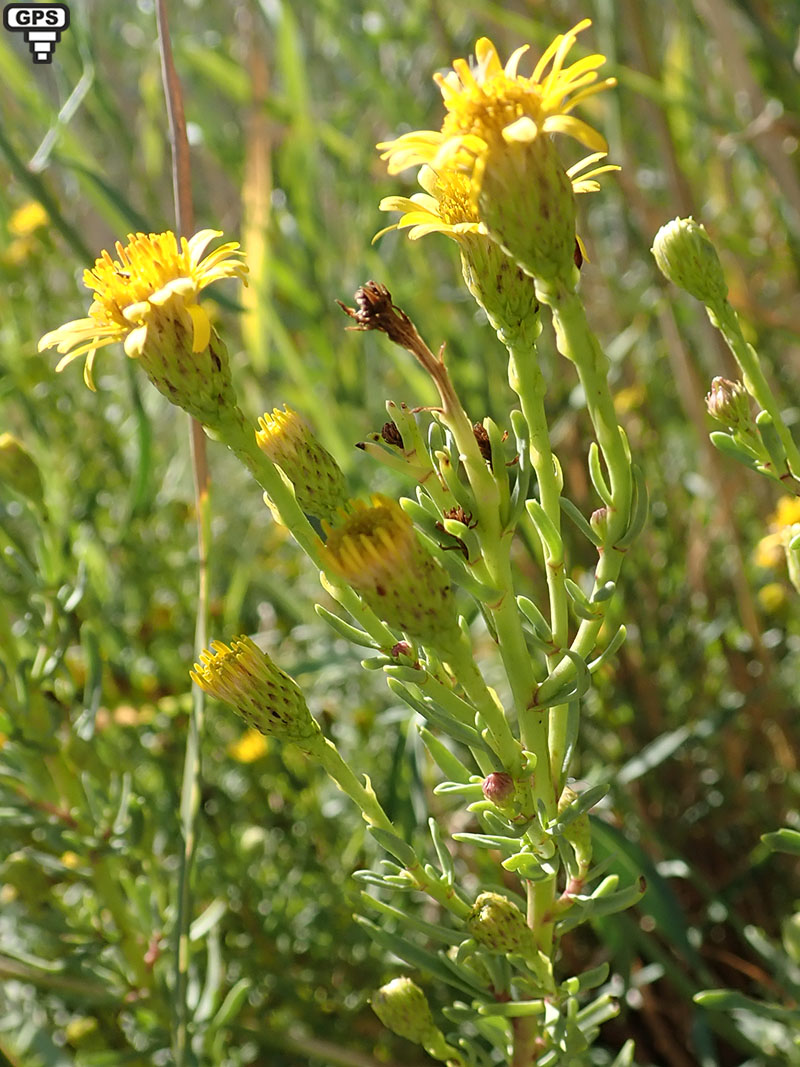 L'inule fausse criste est une plante vivace des terrain salés, marais, bords de mer. Elle se trouve presque toujours sur des terrains renfermant une assez forte proportion de sel marin, mais elle peut aussi prospérer sur un terrain peu riche en sel. Elle est très commune sur le littoral du Languedoc, assez commune sur le littoral du Roussillon mais extrêmement rare sur le littoral de la Provence et des Alpes-Maritimes. Ses tiges sont dressées ou un peu couchées, elles peuvent mesurer de jusqu'à 90 cm de hauteur. Elle se distingue par ses feuilles charnues et glabres, ainsi que par ses tiges qui sont ligneuses dans leur partie inférieure. L'inule fausse criste produit de nombreux capitules avec au moins 18 fleurs ligulées. Les ligules sont reserrées à leur extrémité. L'involucre est formé de folioles inégales dressées, appliquées, linéaires et acuminées. Les extérieures sont entièrement vertes sur leur face externe ; les intérieures sont membraneuses sur les bords. Les fruits sont velus et surmontés d'une aigrette simple composée de poils roussâtres.