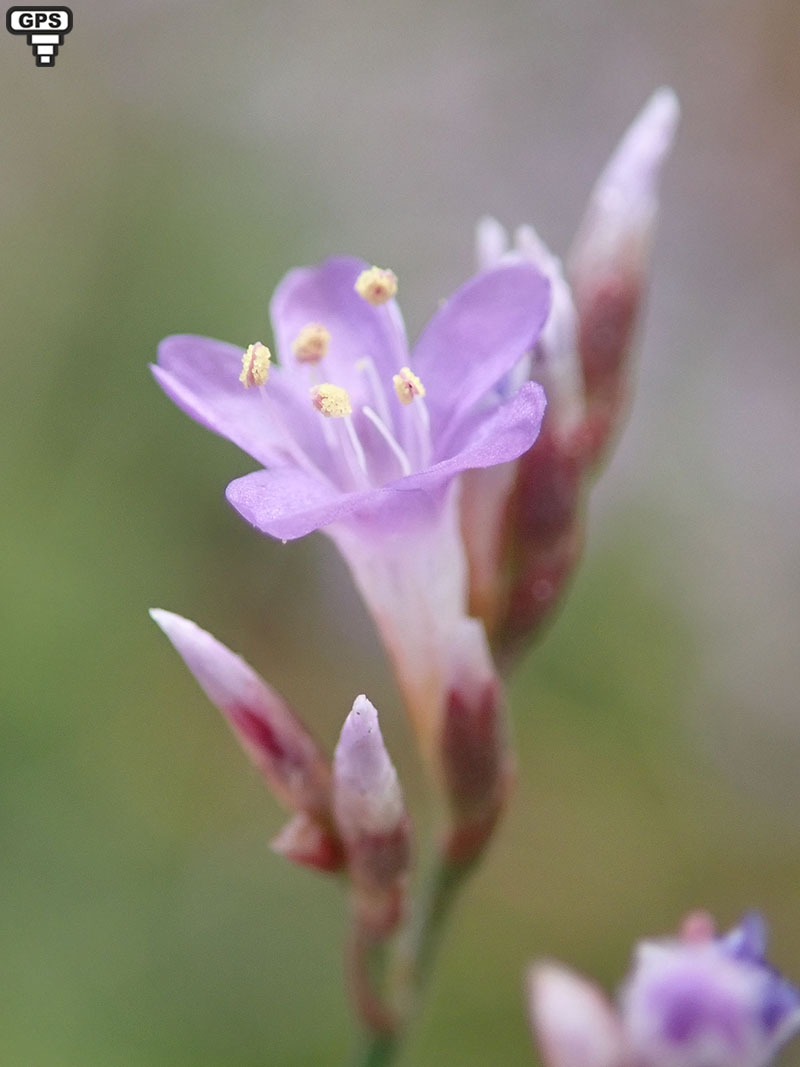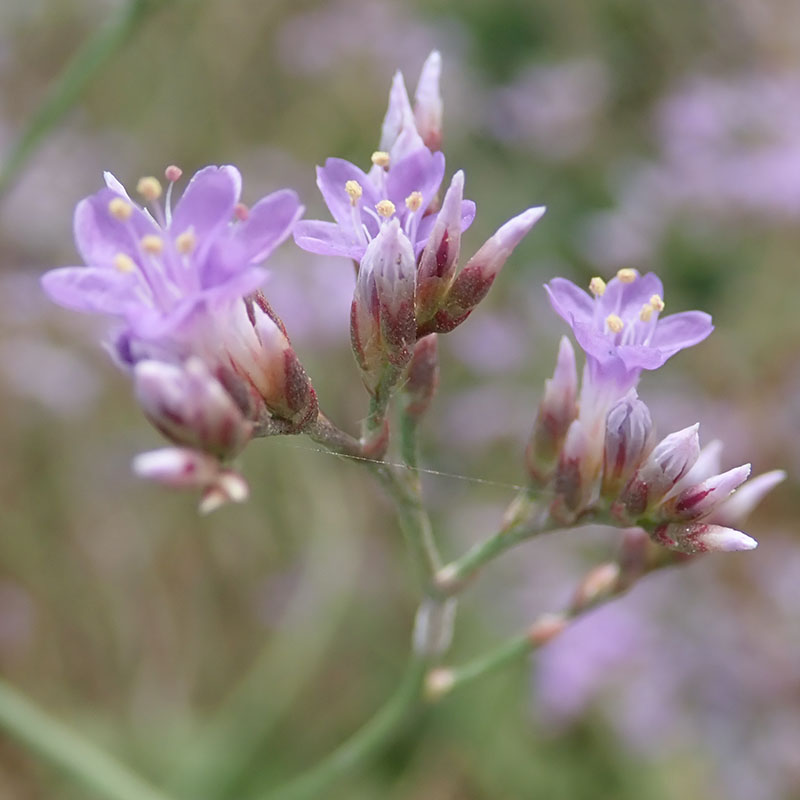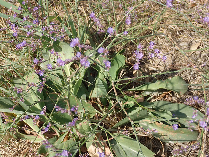 Parfois appelée lavande de mer cette plante pousse à proximité des rivages (notamment de la Méditerranée), sur sol salin ou sablonneux. Les fleurs sont de couleur bleu à mauve. Elles sont petites, groupées en racèmes d'épillets, chacun portant de 1 à 5 fleurs. Elle peut recouvrir des terrains entiers, d'où la comparaison avec la lavande. Elle se reconnaît facilement à ses larges et nombreuses feuilles toutes basales et à ses grande hampes de fleurs mauves. Très présente en Camargue.