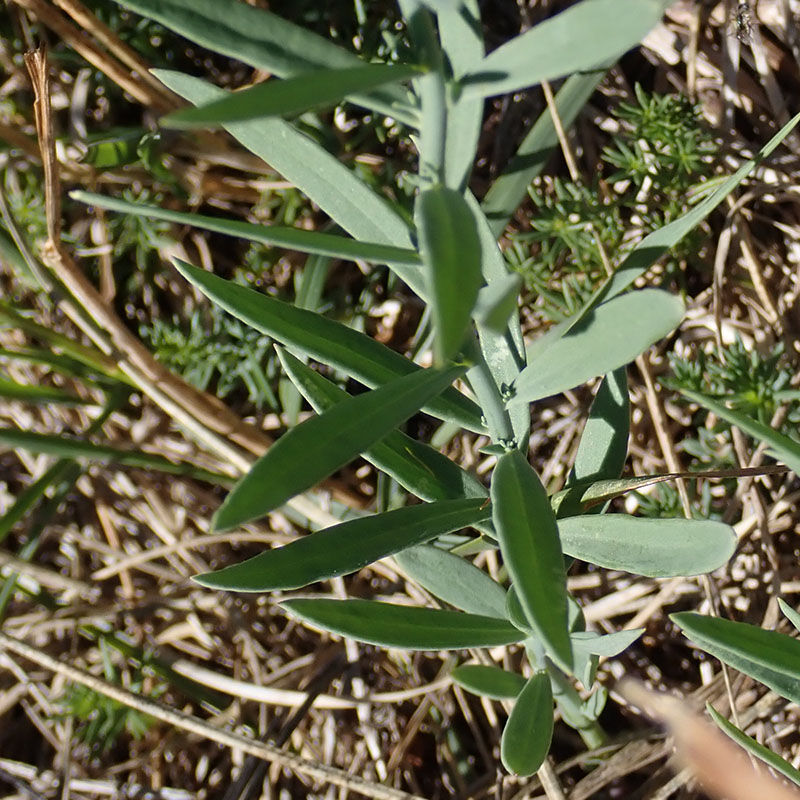 Feuilles éparses, lancéolées-linéaires aiguës, épaisses, un peu charnues, très glauques