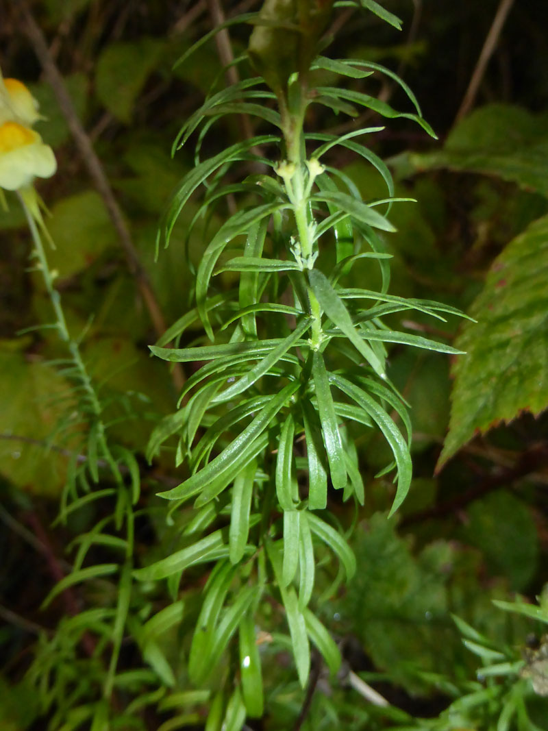 La linaire à feuilles étroite est une plante plus petite que l'on rencontre dans les Alpes en altitude. Ses fleurs sont plus petites, la tache orange du palais est plus pâle ou absente, ses feuilles sont glauques.