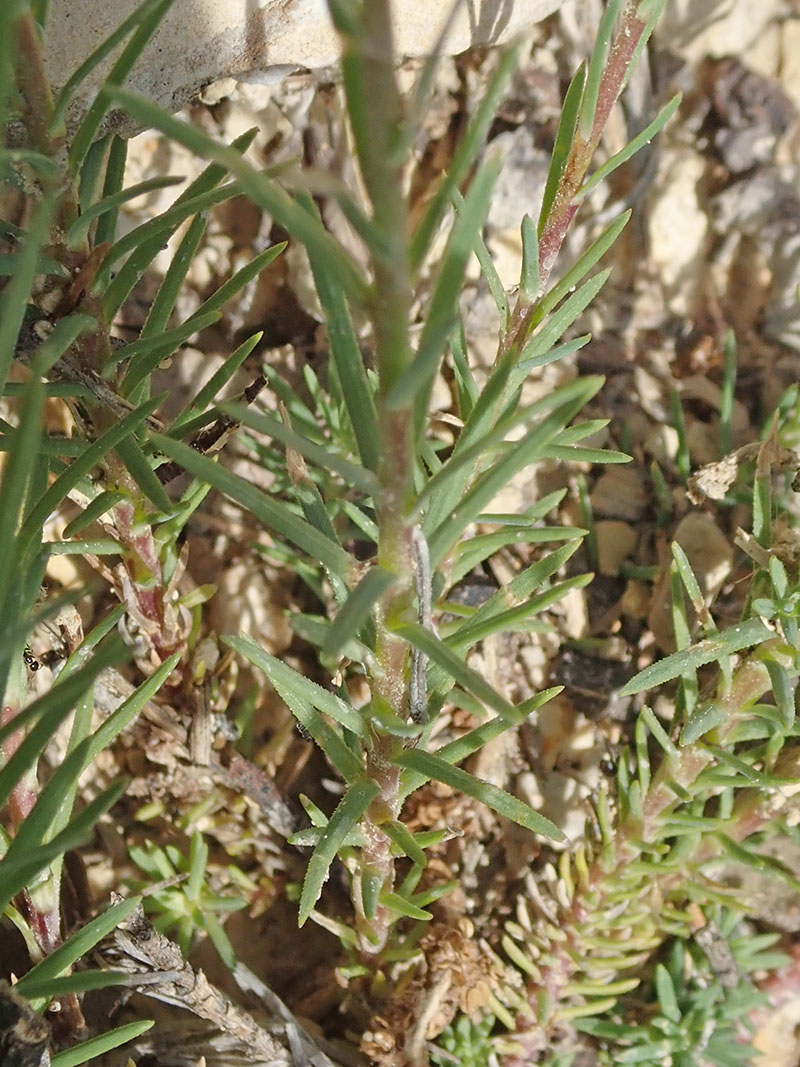 Feuilles alternes, très rapprochées dans le bas, linéaires en alêne avec une nervure