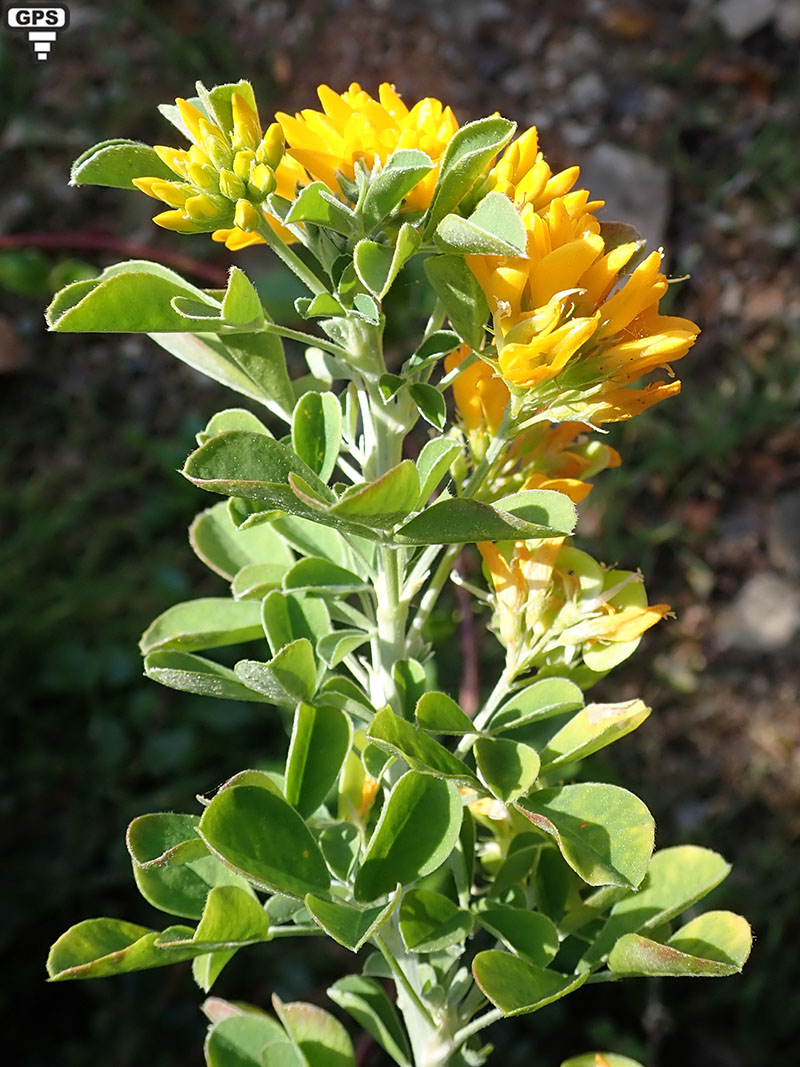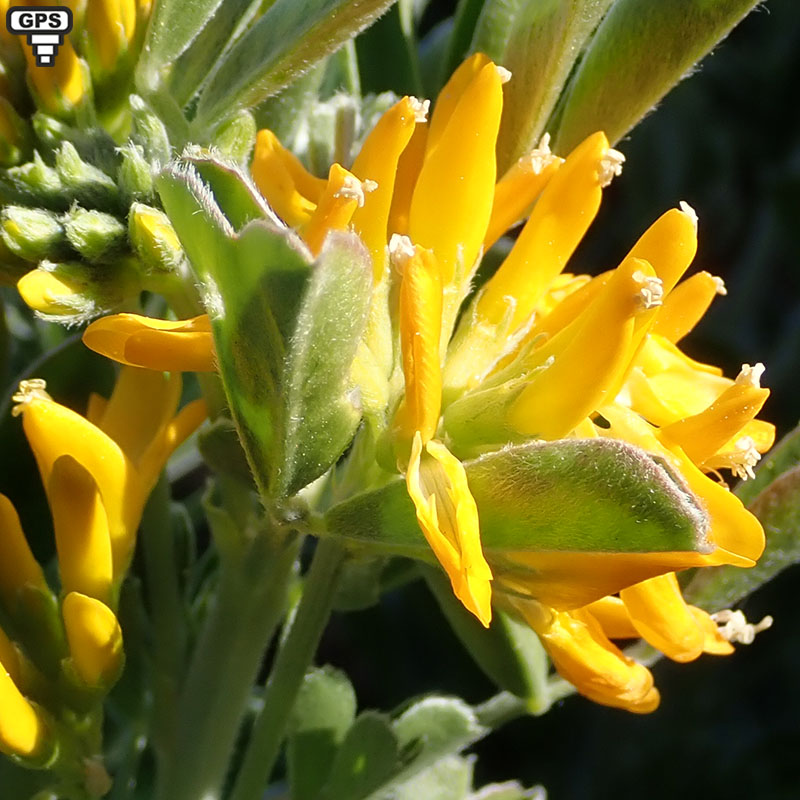 Cet arbrisseau que l'on trouve près du littoral méditerranéen s'est naturalisé sur les rivages de la côte d'Azur notamment dans zones rocheuses. Sa floraison est précoce et il est très résistant à la sécheresse. Il possède des folioles vert grisâtre, soyeuses au revers, et ses inflorescences sont des racèmes simples et denses. Ses fleurs jaune citron ont un étendard étroit et dressé, terminé par des petits filaments blancs.