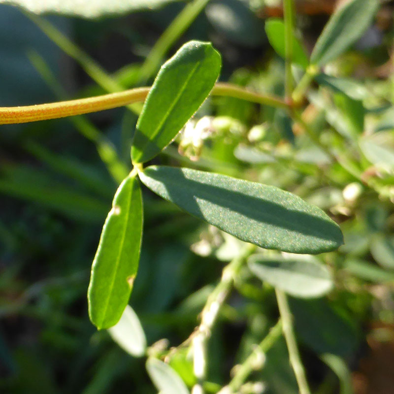 Feuilles alternes, formées de trois folioles oblongues, dentées