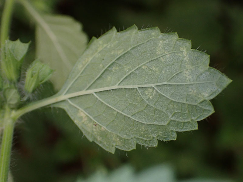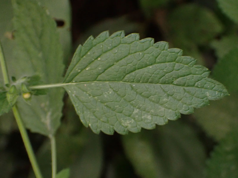Feuilles grandes, ovales, pétiolées, largement crénelées