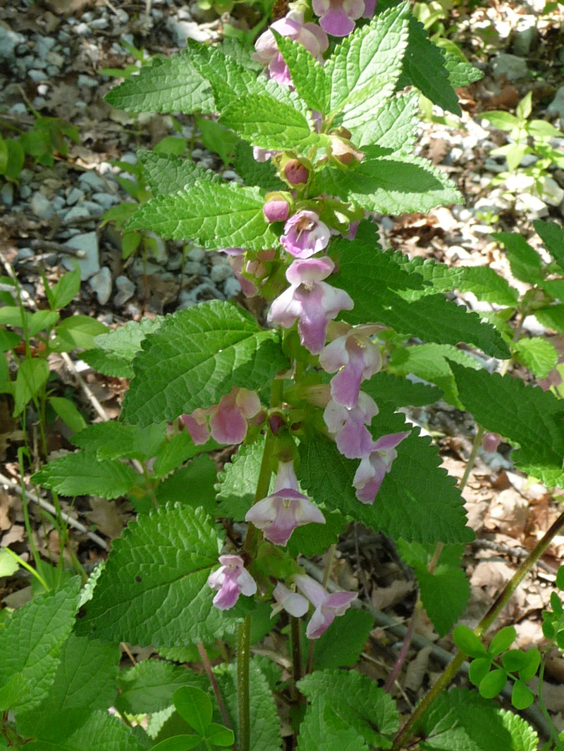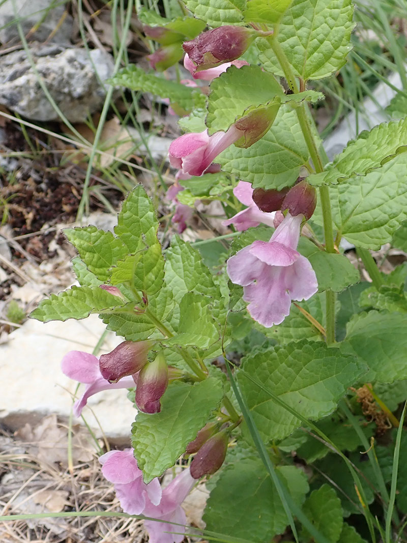 La mélitte à feuille de mélisse est une plante que l'on rencontre dans les bois et les haies de toute la France métropolitaine. Les feuilles sont toutes pétiolées, leur limbe est vert assez clair, poilu, de consistance molle, réticulé, à contour ovale ou en coeur renversé et régulièrement crénelé sauf à la base. Les fleurs sont solitaires ou groupées par deux à l'aisselle des feuilles supérieures et sont portées chacune par un petit pédoncule. Elles sont toutes tournées d'un même côté. Les corolles d'un beau rose clair ou plus rarement blanches, sont assez grosses (3 à 4 cm de longueur) avec un long tube très saillant. Elles présentent une lèvre supérieure dressée, entière ou très faiblement échancrée ; la lèvre inférieure est étalée, à lobe médian nettement plus grand et souvent crénelé au sommet. Le calice rougeâtre, un peu en forme de cloche, est parcouru longitudinalement par 10 nervures principales et reste ouvert après la floraison. C'est une plante vivace, à odeur assez forte, à tige dressée couverte de poils, ordinairement simple. Après la germination, au bout de deux ou trois ans, la racine principale se détruit et apparait alors une courte tige souterraine produisant des racines adventives ; la plante se perpétue et se multiplie par des bourgeons nés sur cette tige souterraine.