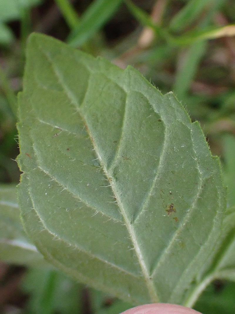 Feuilles toutes pétiolées, ovales - aiguës ou ovales- lancéolées, atténuées à la base, dentées en scie, les florales presque aussi grandes que les autres