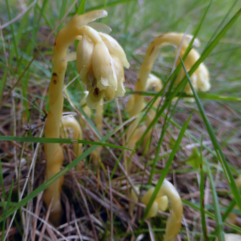 Le monotrope sucepin est une plante vivant en symbiose avec des champignons basidiomycètes, elle croît dans les bois au pied des arbres dans presque toute la France. Elle tire ses substances nutritive de la plante hôte (par exemple le pin sylvestre), elle ne contient pas de chlorophylle et donc n'utilise pas la photosynthèse pour sa croissance. Les feuilles sont toutes réduites à des écailles nombreuses, beaucoup plus serrées vers le bas des tiges, ovales, entières, à nervures peu ou pas ramifiées. Les fleurs jaune clair, plus rarement blanches, sont disposées en une grappe terminale qui est ordinairement simple, parfois rameuse. Elle sont pendantes et tournées dans la même direction. La tige souterraine porte des bourgeons écailleux en forme de cône renversé, elle reste sous terre pendant plusieurs années avant de s'épanouir en tige fleurie.