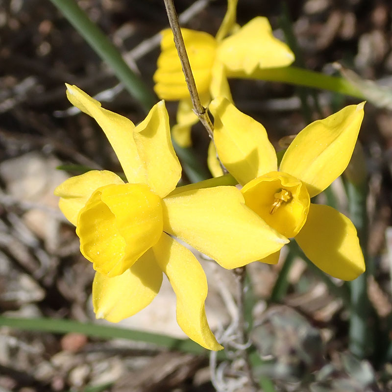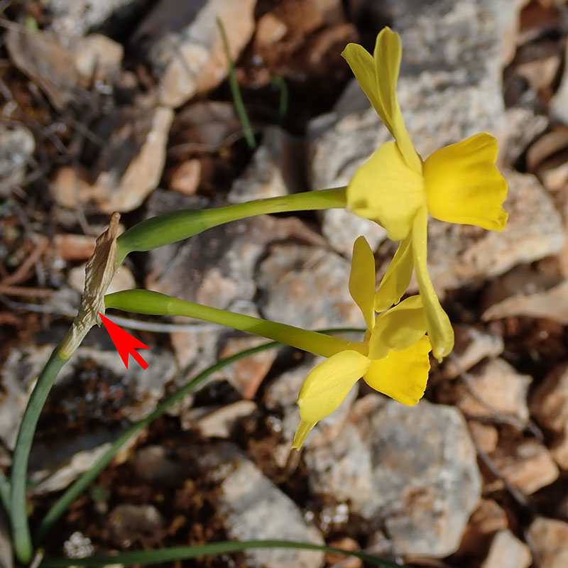 Le narcisse jaune est une plante beaucoup plus grande, il pousse dans les bois humides et non dans les garrigues méditerranéennes. Sa couronne est proportionnellement nettement plus courte, elle est largement inférieure à la longueur du tube de la corolle.