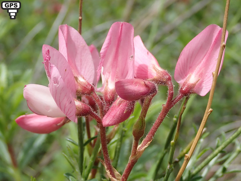 Ce sous-arbrisseau non-épineux, se rencontre dans les lieux un peu ombragés, forêts claires, haies, ravins des montagnes à une altitude moyenne. Les tiges ramifiées et ligneuses forment un buisson produisant de belles panicules de fleurs au printemps. L'étendard est rose vif, strié de veines plus foncées. Les ailes et la carène sont plus claires. Les pédoncules et le calice sont couverts de petits poils glanduleux.