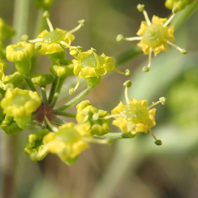Le fenouil présente le même type d'inflorescence mais ses feuilles ont des fines divisions linéaires et ses tiges sont lisses et glabres.