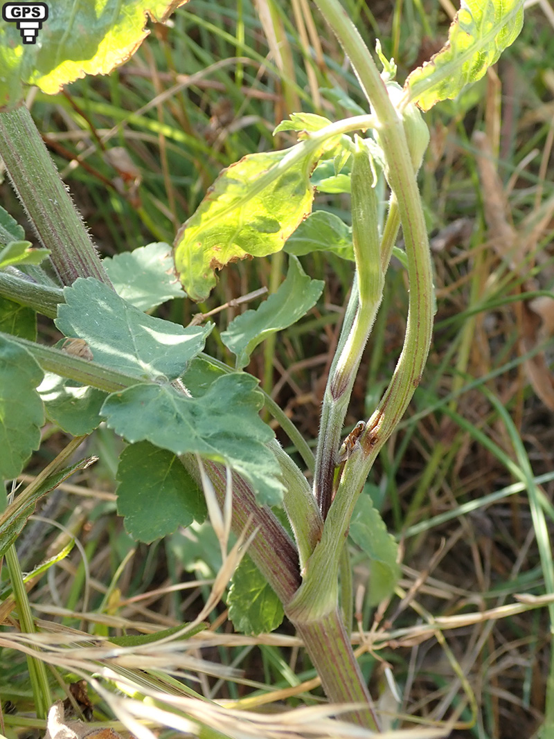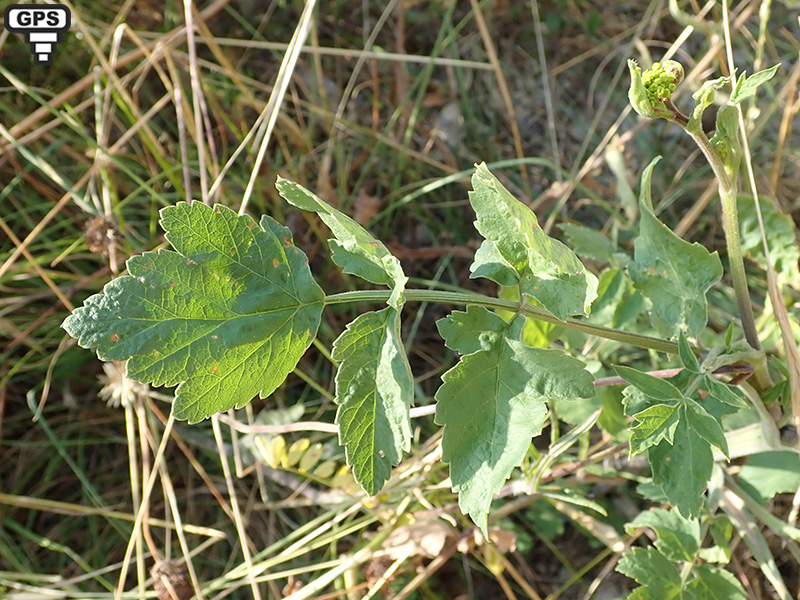 Feuilles embrassantes, les inférieures divisées en 5 à 11 segments, ovales, crénelés presque tout autour à dents inégales, les supérieures développées sur les rameaux, sont étroites, entières ou divisées en 3 lobes