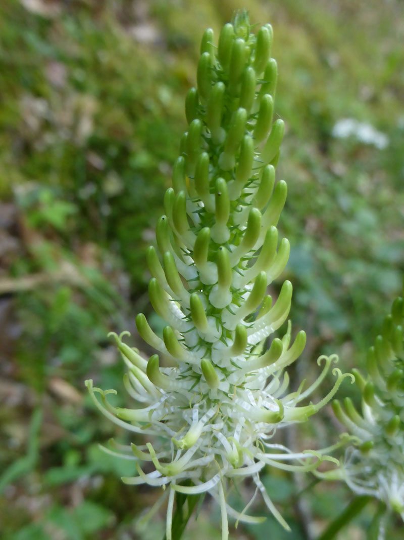 La réponce en épi est une plante vivace pousse dans les sous-bois clairs et les prairies ombragées dans presque toute la France. La tige fleurie est pleine et dressée. Les feuilles de la base ont un pétiole plus ou moins long et leur limbe, doublement denté ou simplement crénelé, est plus long que large. La tige est peu feuillée dans le haut et les feuilles supérieures très allongées sont sessiles, peu dentées ou parfois entières. Les fleurs à corolle blanc jaunâtre ou plus rarement bleu clair sont regroupées sur un capitule oblong et cylindrique. La floraison commence par le bas et les cinq pétales d'abord soudés s'ouvrent en croix pour découvrir le style à 2 stigmates et les étamines glabres. La tige souterraine est épaisse, charnue et allongée. La plante peut se multiplier soit par des bourgeons nés sur la tige souterraine soit par des bourgeons adventifs produits par les racines.