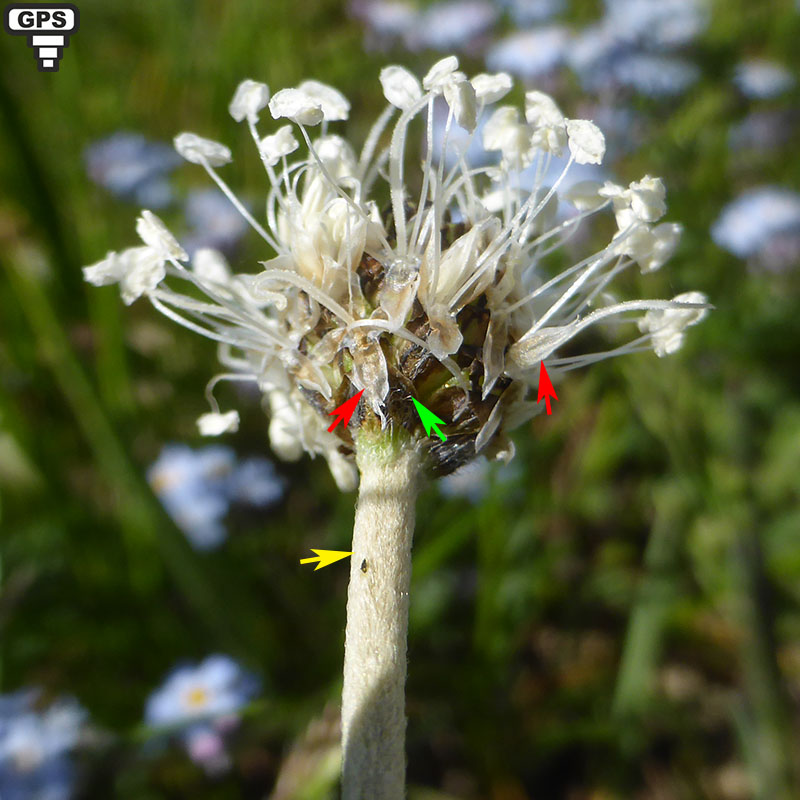 Plante vivace, le plantain argenté produit des épis ovales ou presque ronds avec des fleurs blanchâtres. La corolle flanchâtre ou brunâtre est glabre avec 4 pétales ovales et aigus. Ce sont les étamines et les anthères protubérantes et très blanches qui donne la couleur à l'épi. On le trouve dans les alpages secs et rocailleux des montagnes calcaires du Midi. Son nom lui vient des reflets argentés que produisent ses feuilles, celles-ci sont blanc-grisâtre ou vert-grisâtre, soyeuses et couvertes sur leurs deux faces de poils mous plus ou moins appliqués.
