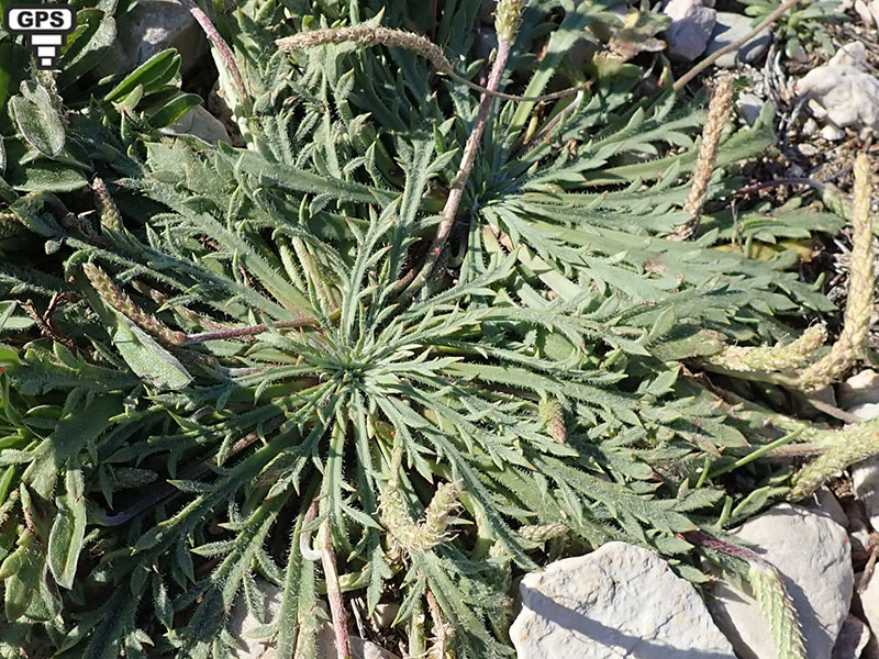 Cette plante annuelle ou bisannuelle se rencontre sur les côtes sableuses ou rocheuse. Il se reconnaît à son port prostré et à ses nombreuses feuilles en rosette épaisses pennatifides à segments linéaires. Ses longs épis cylindrique étroits fleurissent rapidement et deviennent bruns en séchant.De nos jours, employé comme diurétique. Entre dans la composition d'infusions, d'emplâtres contre les ulcères, pustules ou piqûres d'insectes. Peut servir aussi de collutoire pour gargarismes, ou de solution efficace contre la conjonctivite. (Wikipedia)