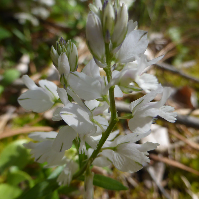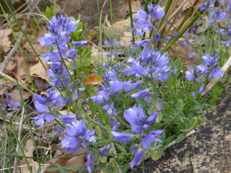 Petite plante discrête que l'on trouve le plus souvent dans les bois clairs ou les prairies, le polygale du calcaire produit des inflorescences bleues, roses ou blanches en racème simple. On le différencie du polygala vulgaire par ses tiges plus nombreuses ne formant pas de rosette à la base et ses feuilles plus larges. Comme son nom l'indique, c'est une plante appréciant les sols calcaires.