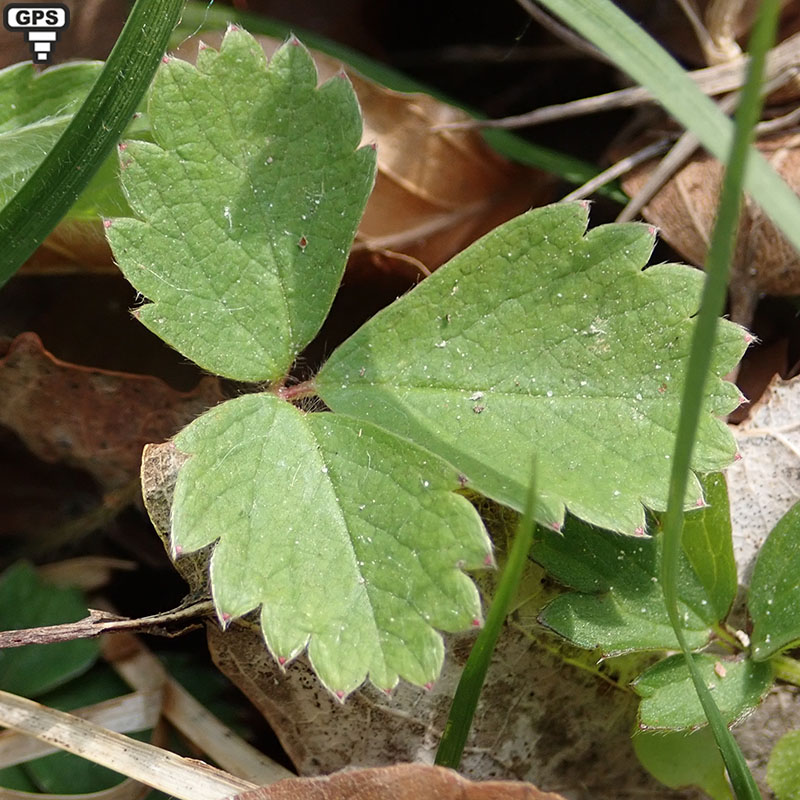 Feuilles radicales à 3 folioles obovales - arrondies, velues-soyeuses, munies tout autour de 8 à 12 dents profondes, larges et écartées, caulinaires rares ou absentes