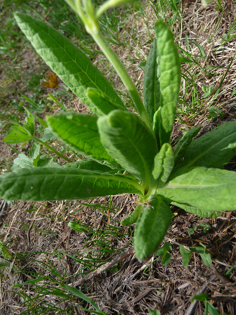 Feuilles En rosette à la base, ovales- oblongues, atténuées ou brusquement rétrécies à la base, inégalement dentées, ridées-réticulées, vertes sur les deux faces