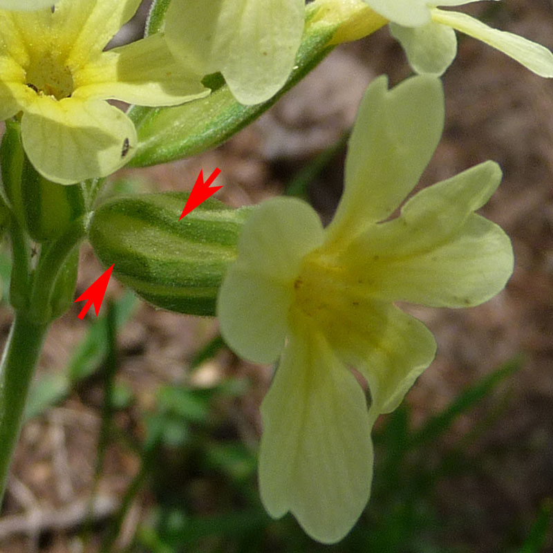 Les fleurs de la primevère officinale ont des corolles plus petites avec des lobes bien moins longs. Ses calices sont entièrement jaune blanchâtre et non marqués de vert sur les angles. Ses feuilles sont gris blanchâtre sur le revers.