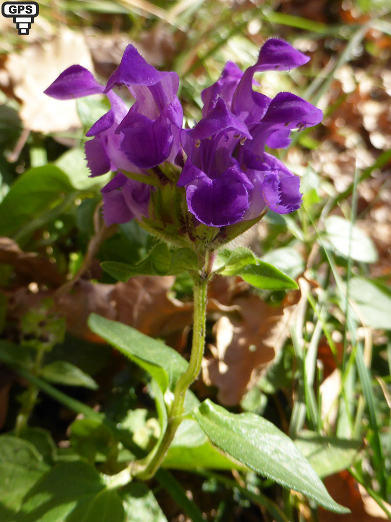Plante poussant dans les prés secs et les sous-bois basophilles, cette lamiacée se distingue de la brunelle commune par des fleurs plus grandes et l'absence de grandes feuilles juste sous l'inflorescence. Les calices sont hérissés de poils blancs, le pétale supérieur de la corolle est en forme de casque, il est velu sur le dessus et recouvre entièrement les quatre étamines et le pistil.