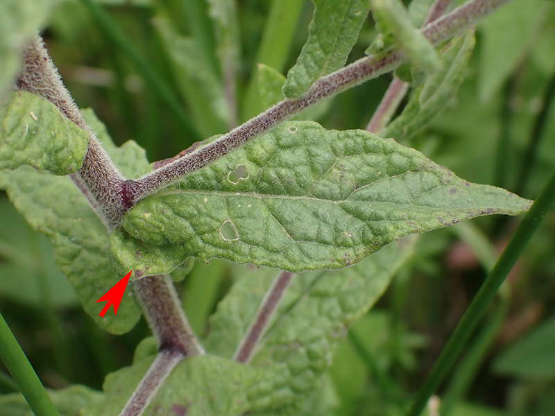 Feuilles molles, vertes en dessus et pubescentes en dessous, ondulées ou entières, sessiles, oblongues - lancéolées, embrassantes avec deux oreillettes