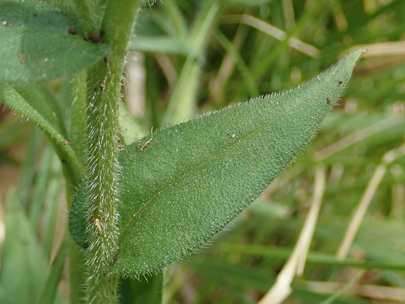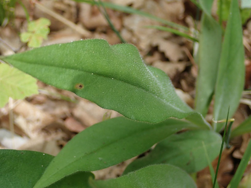 Feuilles entières, les radicales longues de 20 à 30 cm, non marbrées de blanc, étroitement lancéolées et acuminées, atténuées en pétiole