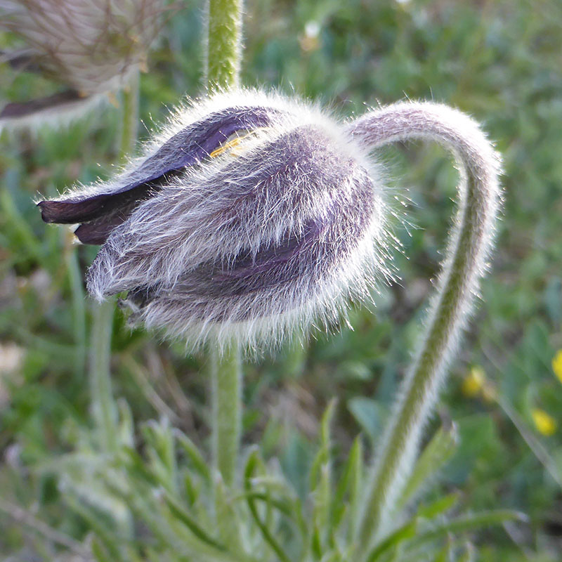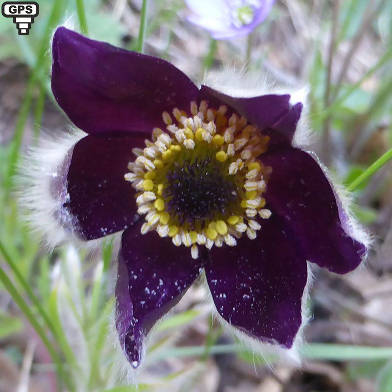 Cette plante vivace à tige souterraine épaissie se caractérise par ses fleurs munies de tépales violet très foncé et rougeâtres par transparence. Ceux-ci sont très velus sur leur face externe. Les feuilles et les pédoncules sont également pourvus de nombreux poils. Le centre de la fleur est occupé par les étamines formant un cercle autour du pistil doté de styles filamenteux. Les feuilles de la base sont longuement pétiolées et doublement divisées. C'est une plante assez rare : on ne la rencontre que dans les pâturages des Alpes du Sud en début de printemps.