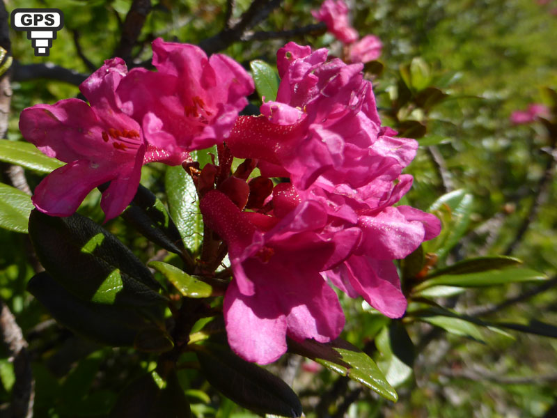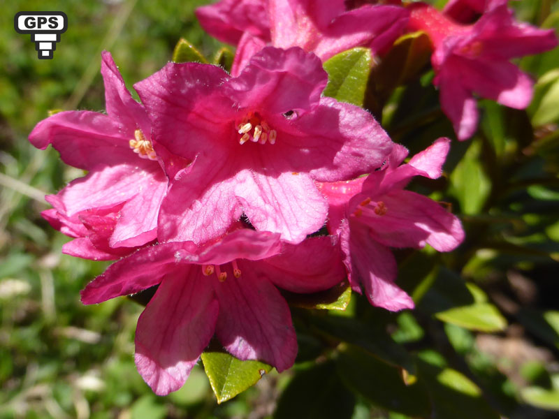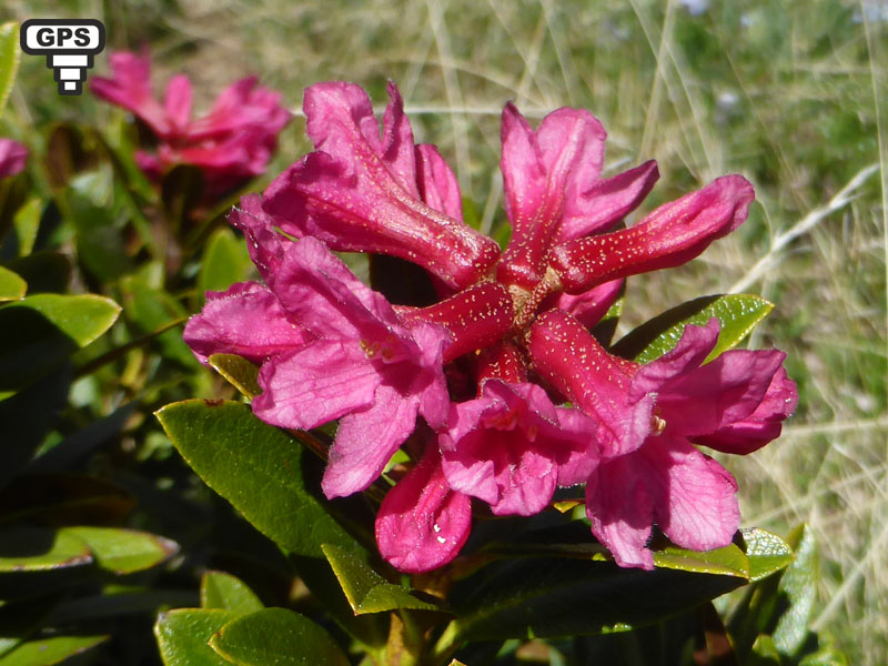 Sous-arbrisseau poussant dans les rocailles, les pâturages et les bois clairs, le rhododendron ferrugineux doit son nom à la couleur rouille de la face inférieure de ses feuilles. Il peut former des massifs importants sur certains flancs de montagne. L'inflorescence est une petite ombelle portant généralement de 4 à 12 fleurs. Celle-ci ont un calice très court et une corolle un peu irrégulière, en cloche. L'intégralité de la plante est glabre.Toxique : renferme de l'arbutine, de l'aricoline et de rhodoxanthine. Ils sont considérés de toxicité moyenne, mais provoquent des vomissements, des troubles digestifs divers, des troubles nerveux, respiratoires et cardiovasculaires. (Wikipedia)