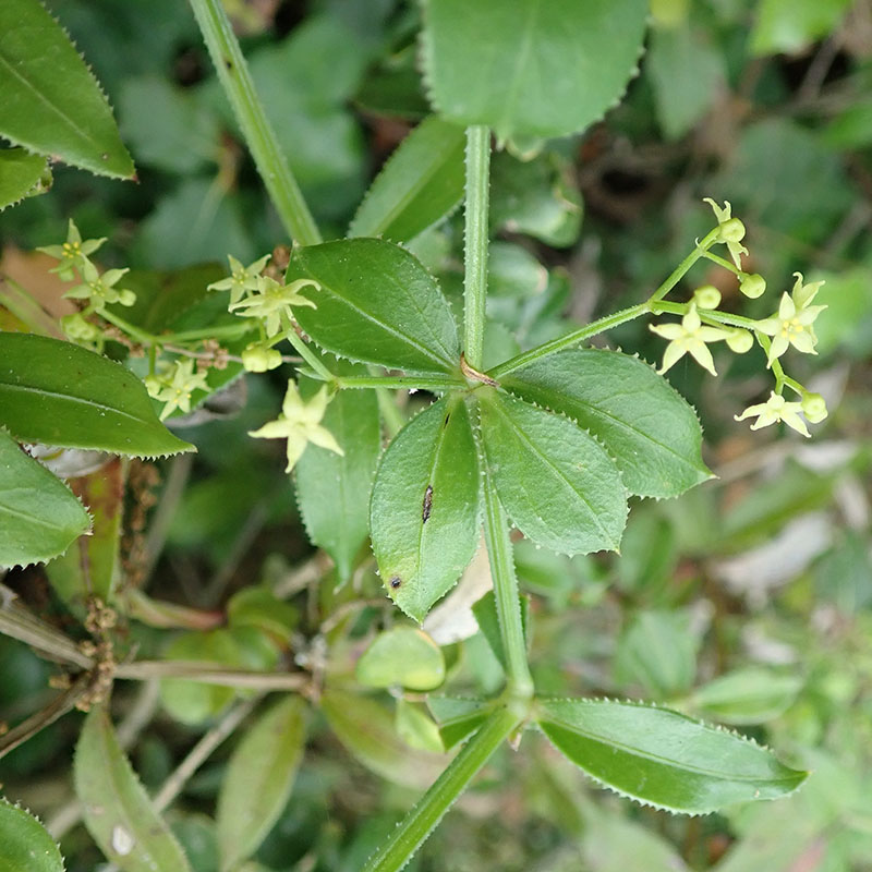 Feuilles lancéolées réunies par quatre ou six sur la tige formant une sorte de verticille avec des dents crochues sur les bords