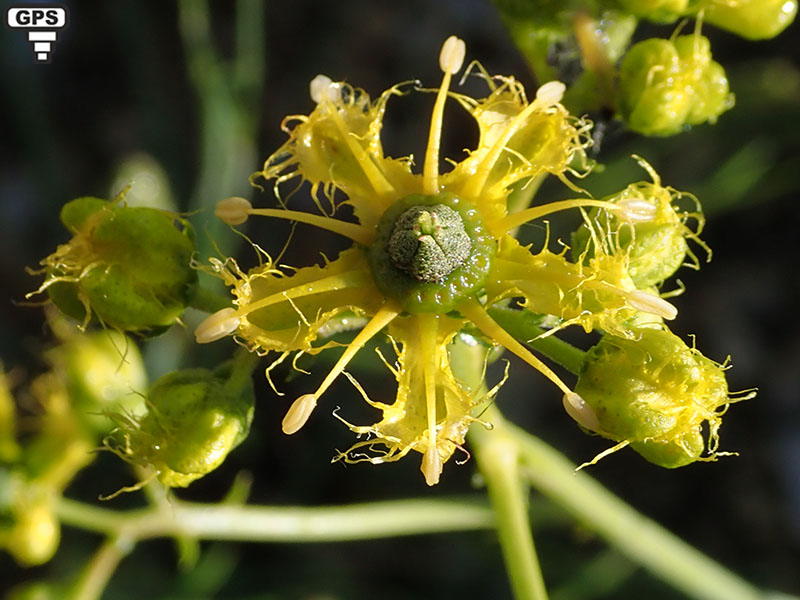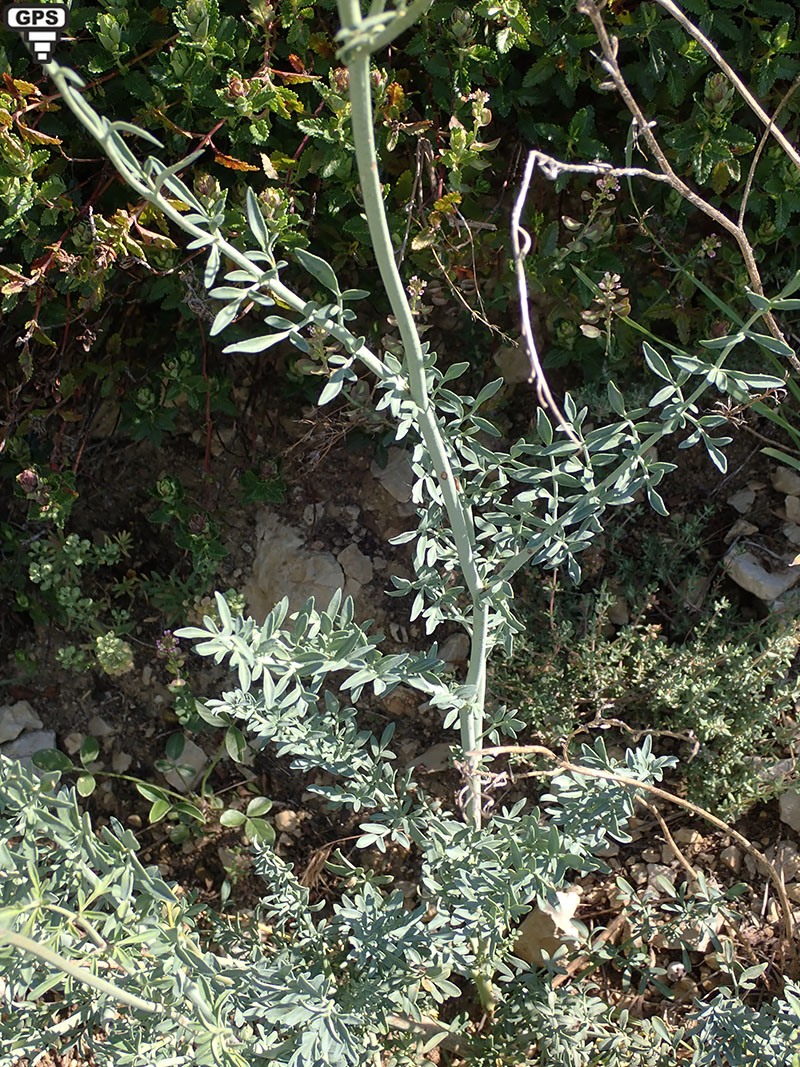 La rue à feuilles étroites est une plante vivace et glauque dégageant une odeur très forte (surtout les feuilles) que l'on juge souvent désagréable. On la trouve dans les endroits secs, les coteaux pierreux, entre les rochers dans le Midi de la France. Ce sont les pétales ciliés et frangés des fleurs qui permettent de l'identifier facilement ainsi que ses feuilles vert grisâtre avec des divisions plates, ovales, inégales et obtuses au sommet. Les pétales sont au nombre de quatre ou cinq comme les carpelles, et on compte de huit à dix étamines. Les sépales sont obtus au sommet et les fruits sont terminés en pointe. Elles se perpétuent par les ramifications de leur tige souterraine.