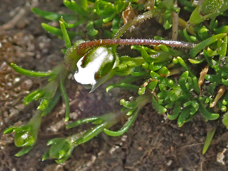 La sagine glabre est une petite plante vivace que l'on trouve dans les pâturages ou dans les endroits sableux et humides des Alpes sur des sols acides. C'est une petite plante glabre ou pubérulente - glanduleuse qui passe inaperçue hors floraison tant les feuilles sont discrêtes et réduites. Les tiges sont presque ligneuses à la base, rampantes et redressées. Les fleurs à 5 pétales blancs, 10 étamines et à 5 styles plus court que l'ovaire sont tenus par de fins pédoncules mesurant de 6 à 9 fois la longueur des feuilles. Ils sont penchés au sommet après la floraison et les sépales sont appliqués sur le fruit mûr. Elle se multiplie et se perpétue par des bourgeons souterrains ou par les divisions de la base des tiges rampantes.
