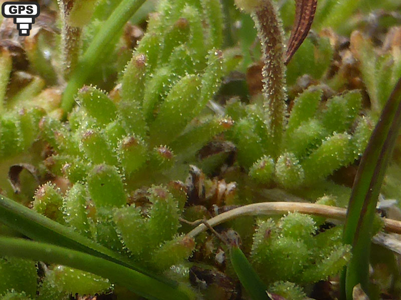 Feuilles radicales imbriquées en rosettes très serrées, épaisses, oblongues - linéaires, obtuses, entières, ciliées, les anciennes rougeâtre au sommet