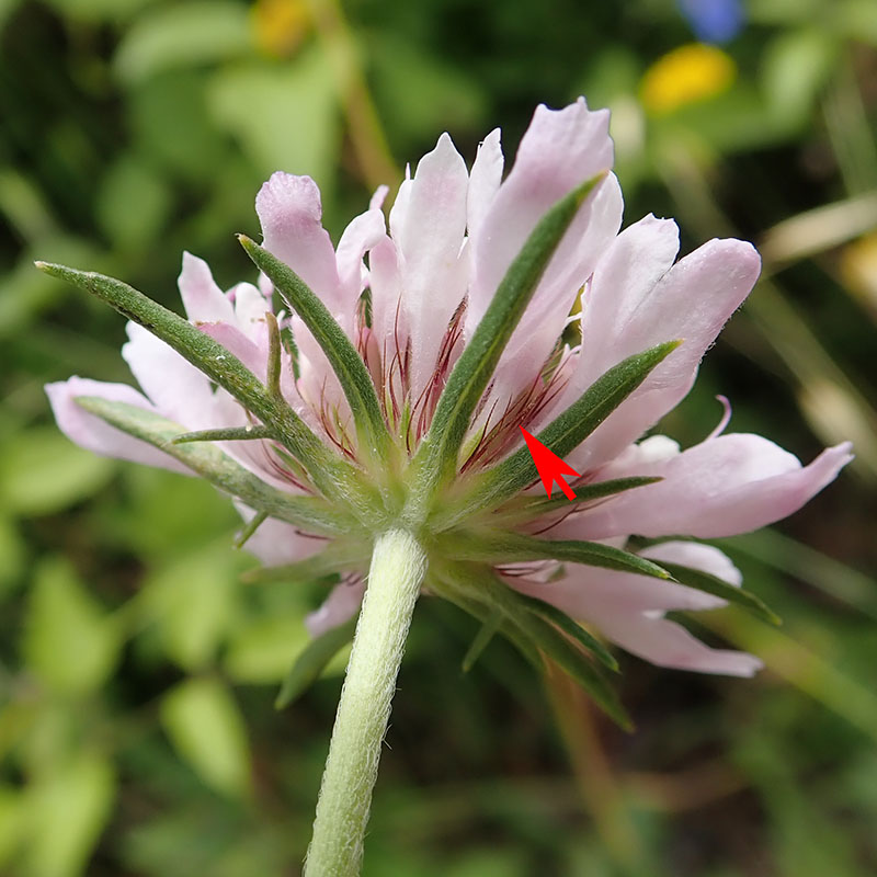 La scabieuse à trois étamines a de très courtes soies noires prolongeant les calices... et 3 étamines !