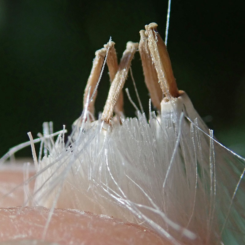 Fruits akènes à aigrette, brun clair striés longitudinalement (3 à 4 mm de longueur)